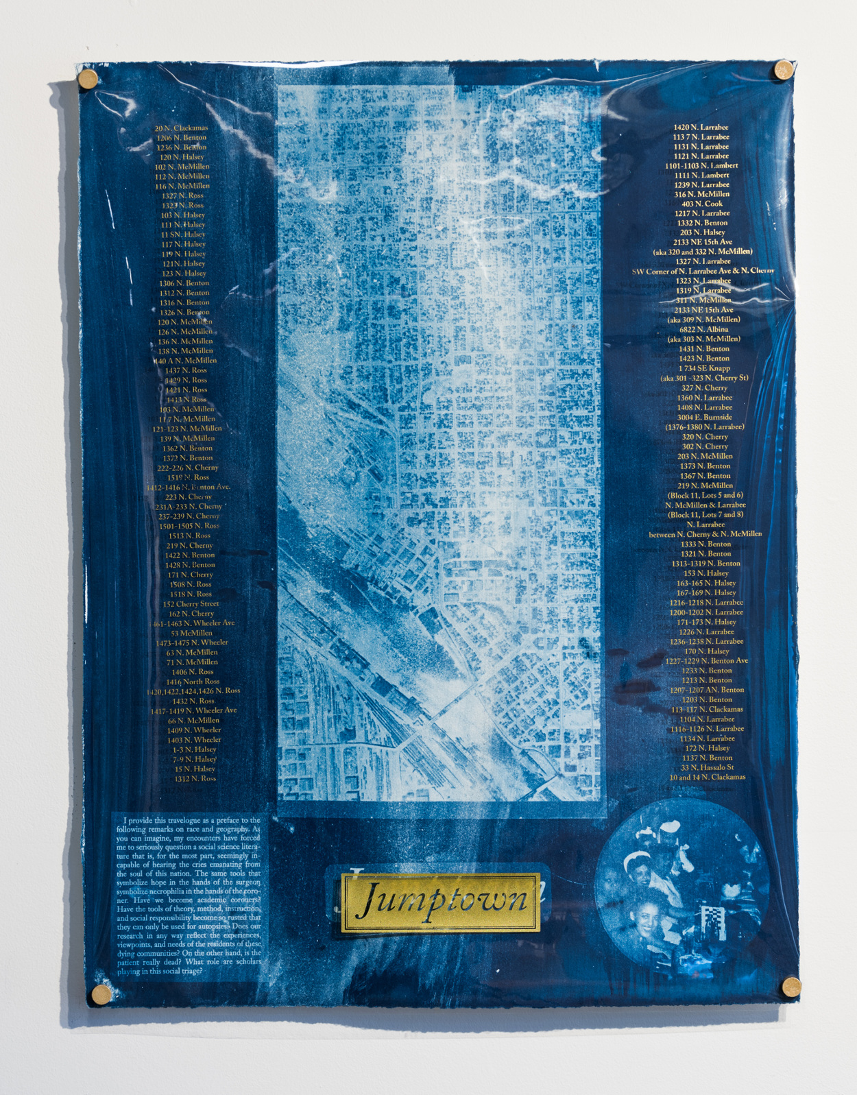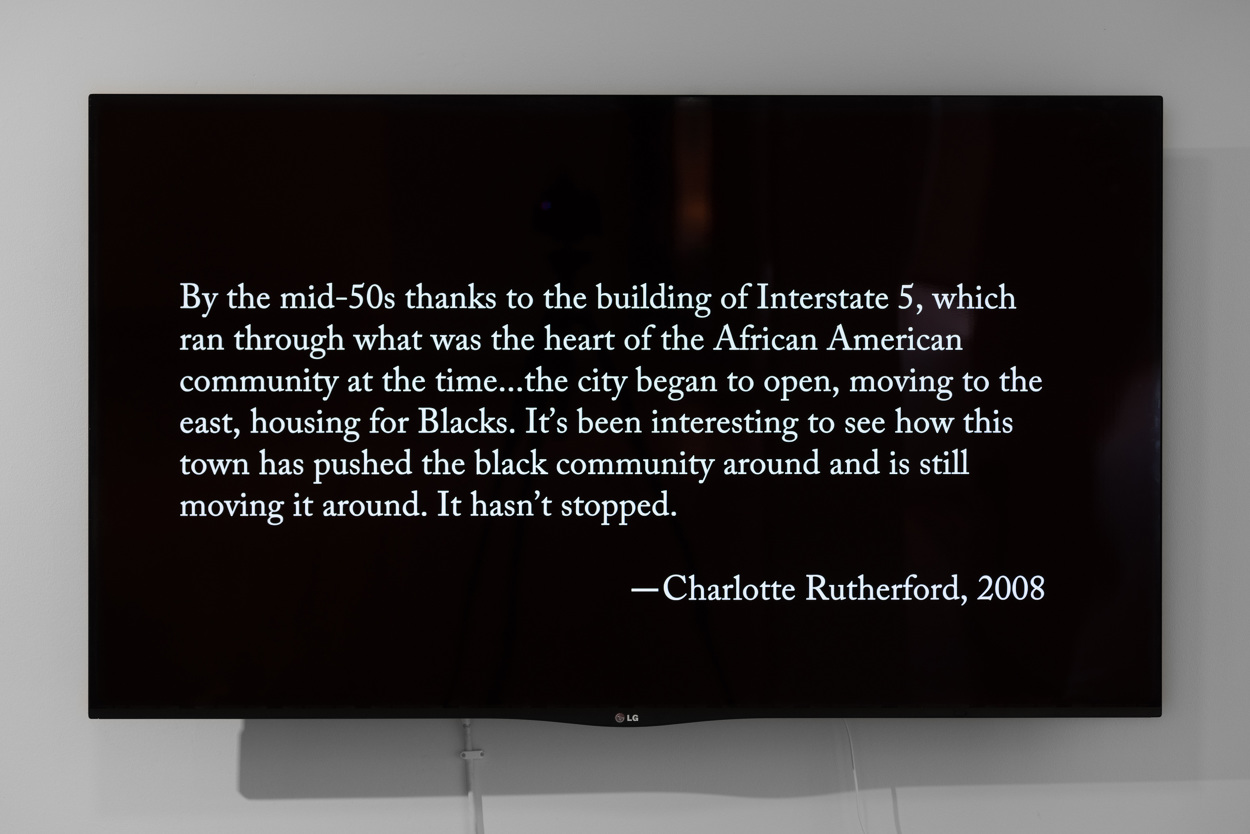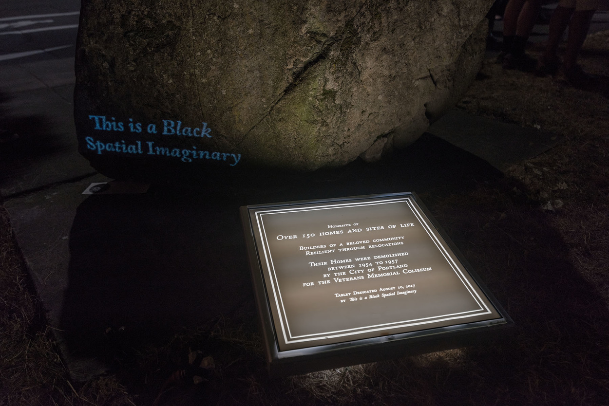 This Is A Black Spatial Imaginary considers the movement and fixity of Black communities, by activating past, present and future spaces for Black life. Moving from NW to NE Portland (as Black Portlanders did), the work starts near Union Station at PNCA’s Center for Contemporary Art and Culture, crosses the Broadway Bridge, activates key sites, and ends on the eastside at PCC’s Paragon Gallery, with over 40 of Black artists and scholars coming together to showcase work and share ideas. In shifting through historical and contemporary Black geographies, the work provides clues to understanding how Black possibilities live and breathe. The project grounds itself in collaborative work that span local and global Black geographic imaginaries, bringing both analytics and poetics to fields of practice.
